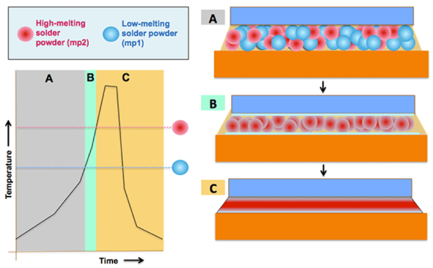 銦泰公司針對(duì)高溫?zé)o鉛焊接研制了一種被稱(chēng)為BiAgX?的焊錫膏技術(shù),它形成的焊接點(diǎn)在溫度高于260°C時(shí)重熔。