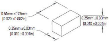 | 1.27mm x 2.03mm x 1.27mm | 0.050″ x 0.080″ x 0.050″ | 長(zhǎng)方形 | 0.02410g |