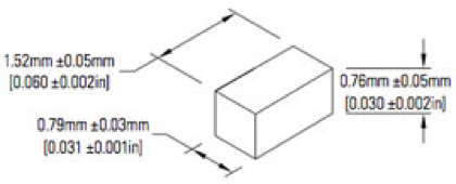 | 0.760mm x 1.520mm x 0.787mm | 0.030″ x 0.060″ x 0.031″ | 長(zhǎng)方形 | 0.00650g |